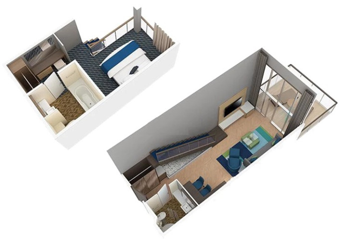 | L1 - Crown Loft Suite s balkónom 68 m² + balkón 13 m². 2-podlažný apartmán. 17. paluba. Max 4 osoby. Výhody Royal Suite Sky Class. | 10 896 € 5 448 € za osobu |