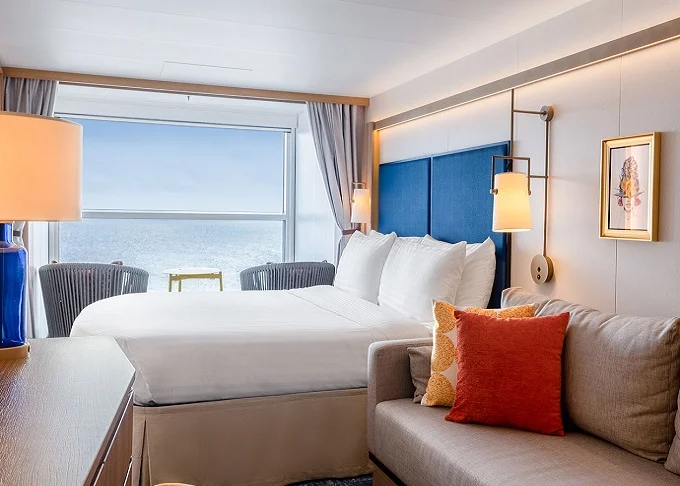 VP - Panoramic Suite 38-41 m². Celoplošné panoramatické neotvárateľné okno s výhľadom na more. 16, 17. paluba vpredu. Max 4 osoby. Výhody Suite Sky Class. 9 162 € 4 581 € za osobu