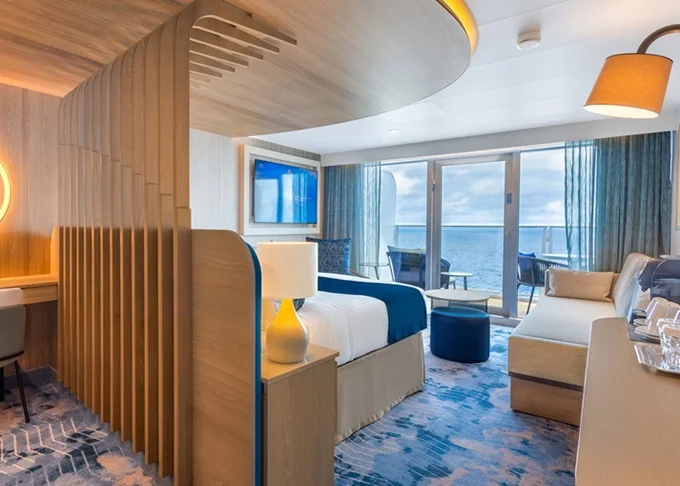 I3 - Kajuta Infinite Ocean View 23 m² (vrátane 4,5 m² verandy Infinite s výhľadom na more). 9,10,11. paluba stred. Max 4 osoby. 5 811 € 5 811 € za osobu