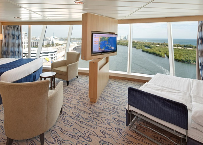 | VP - Ocean View Panoramic Suite (bez balkónu) 38 m². Panoramatické neotvárateľné okná. Max 6 osôb. Výhody Suite. | 7 344 € 2 448 € za osobu | ||