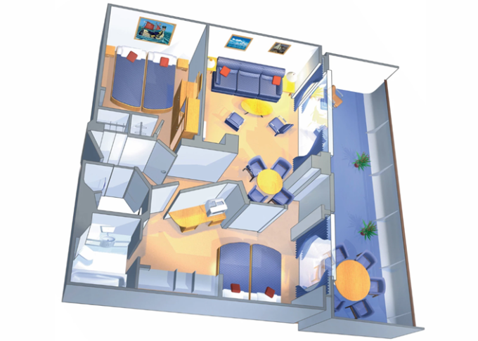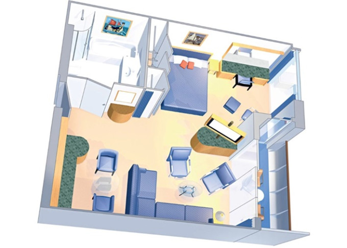 | VP - Ocean View Panoramic Suite (bez balkónu) 38 m². Panoramatické neotvárateľné okná. 12. paluba. Max 6 osôb. Výhody Suite. | 6 801 € 2 267 € za osobu | ||